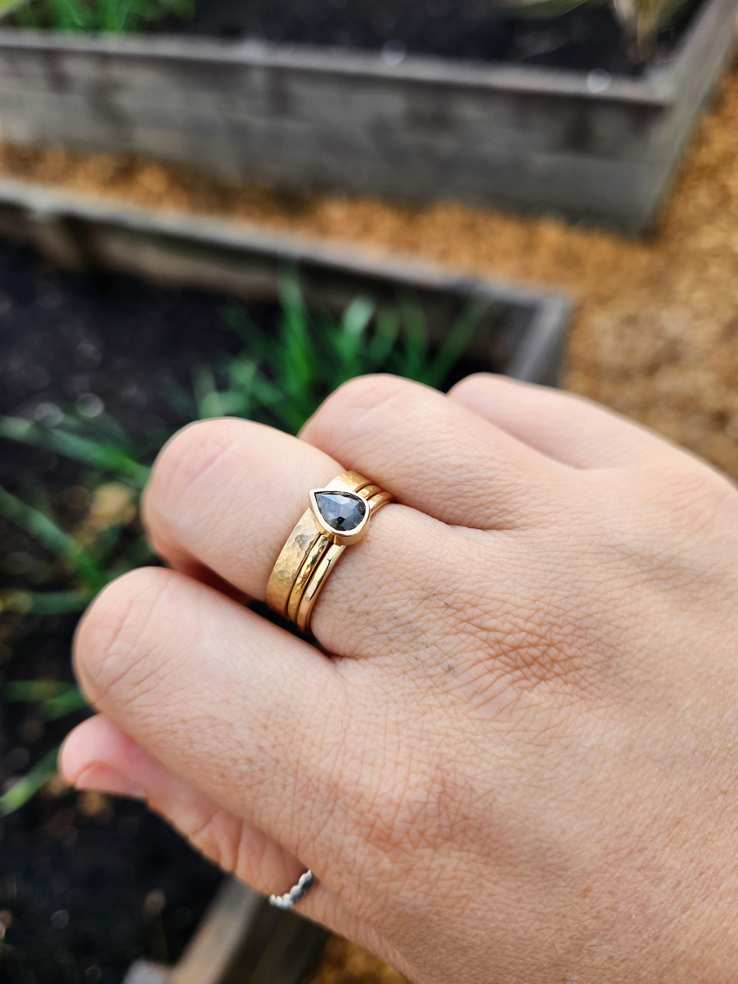 All of the items currently for sale are handmade by me in Oregon, USA. While not all of my material is recycled, I do take a forge the scraps approach for any left over silver and gold. If there are any premade parts such as necklace chains or findings, they will be noted in individual listings. I specialize in gemstone jewelry featuring beautiful handpicked rose cut stones, Australian opals, and cabochons. All of my work is currently done in house in slow fashion without using premade castings or settings.