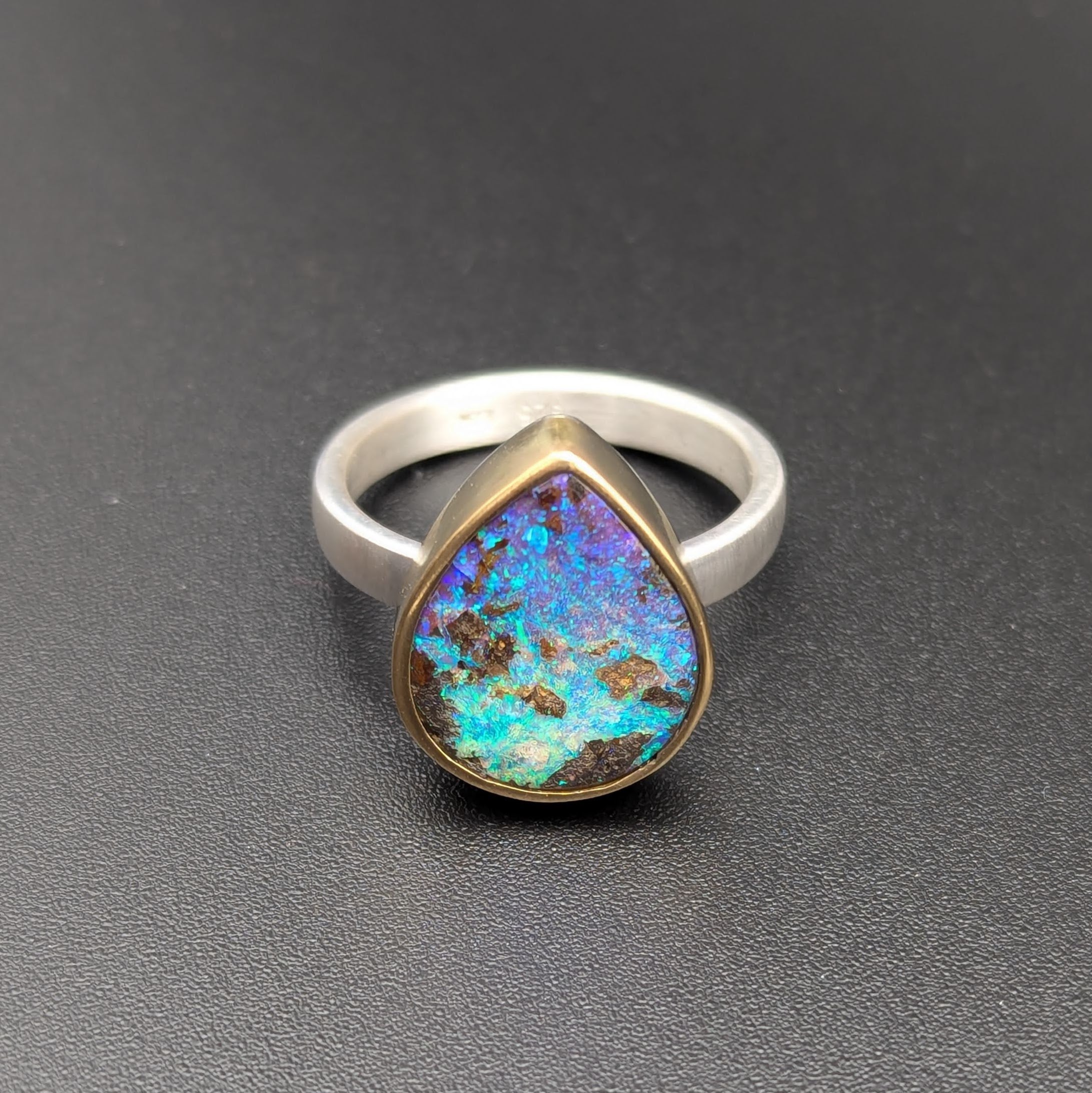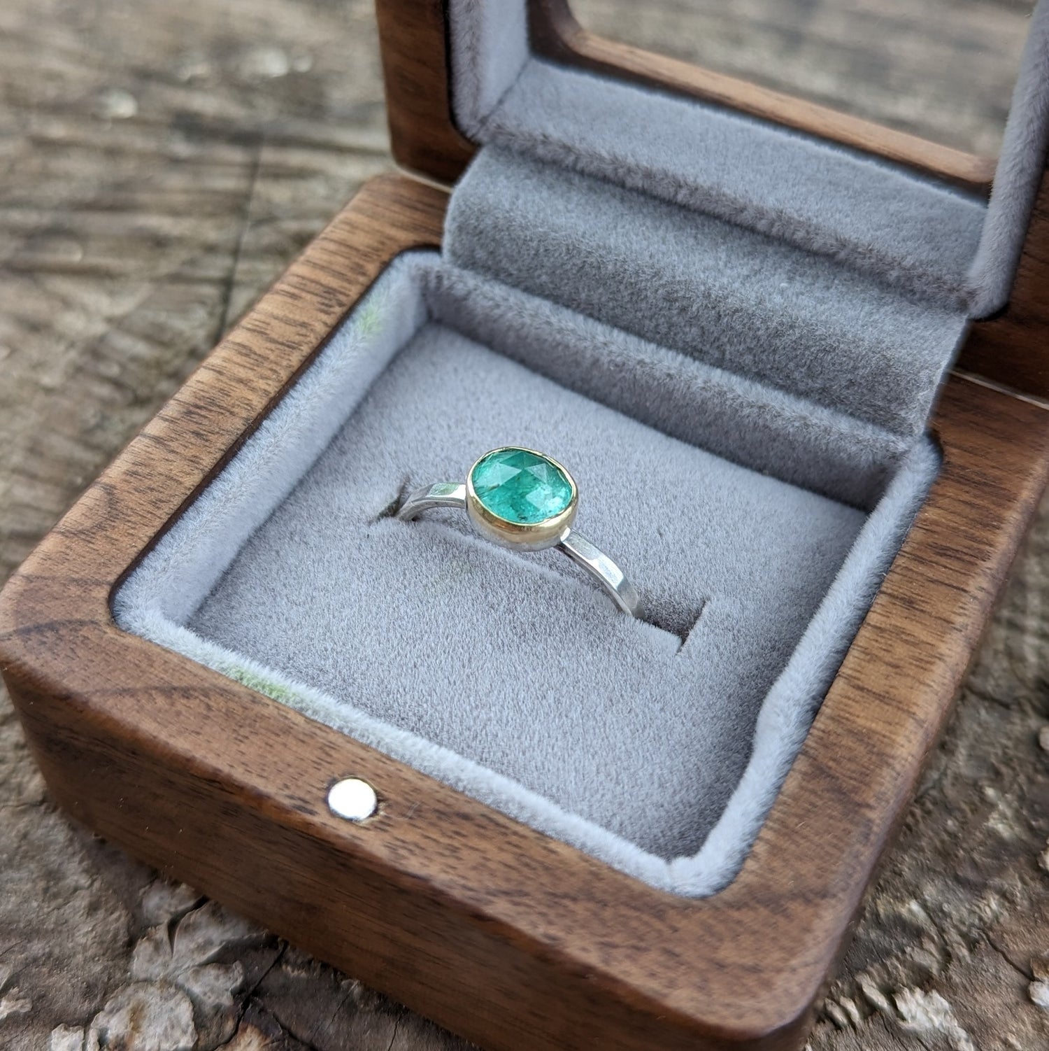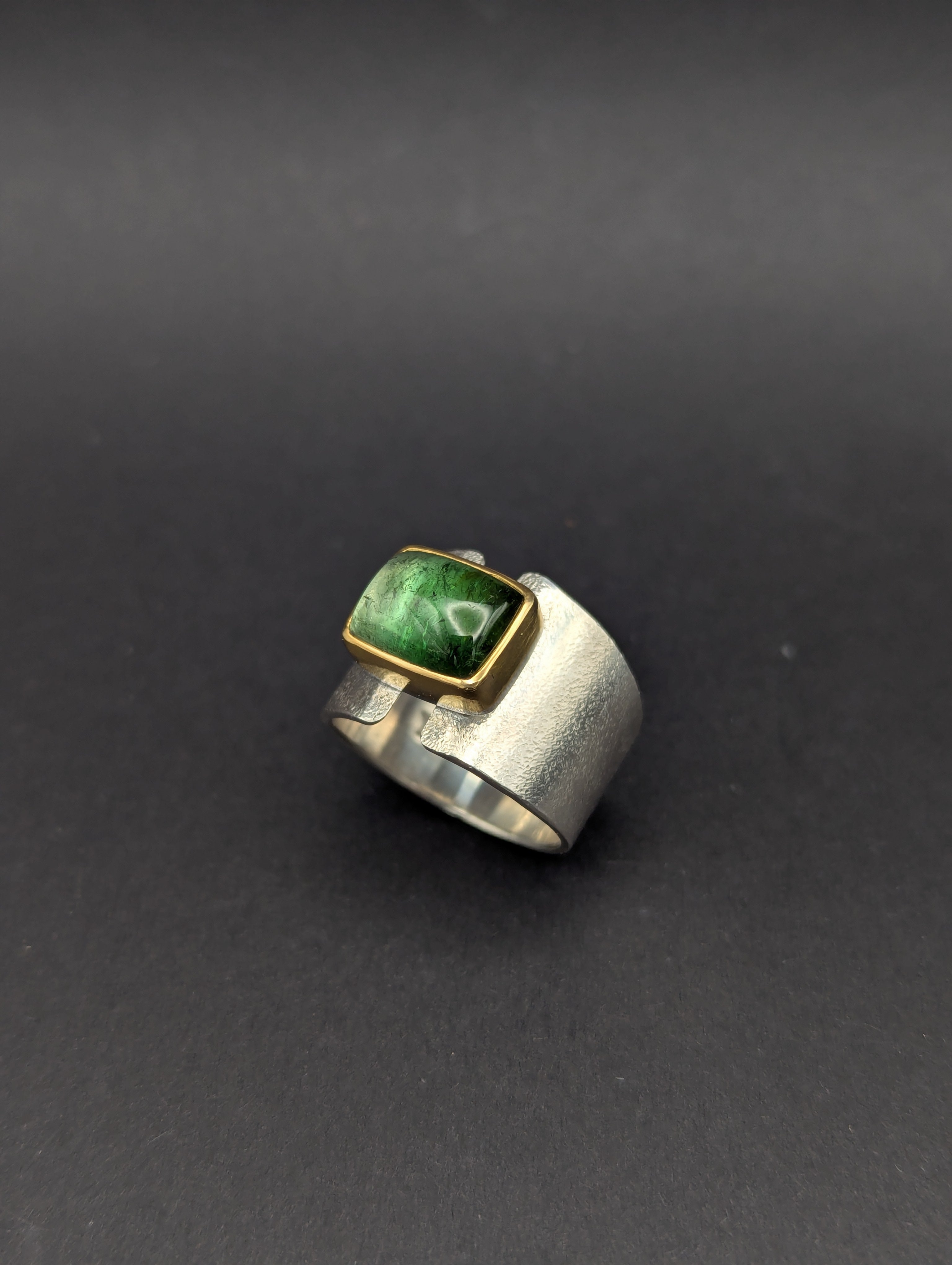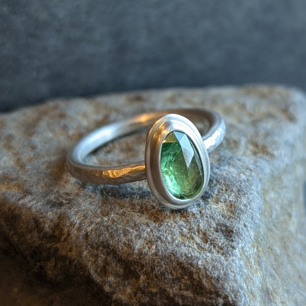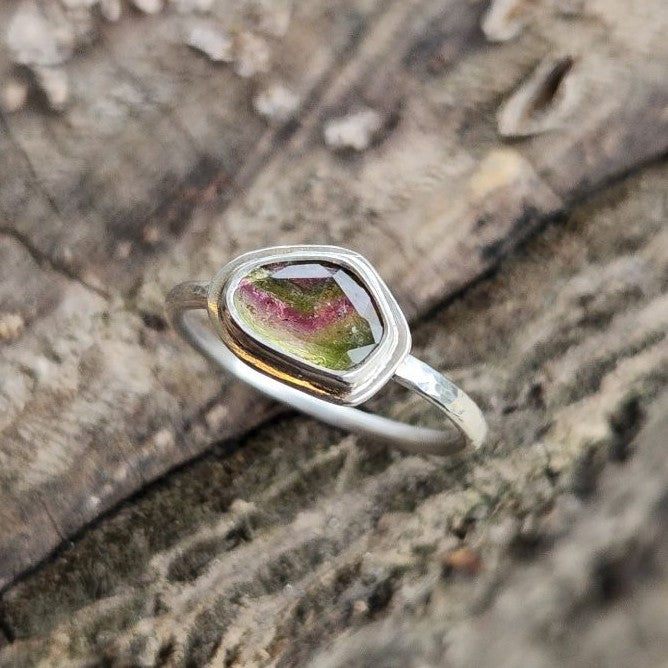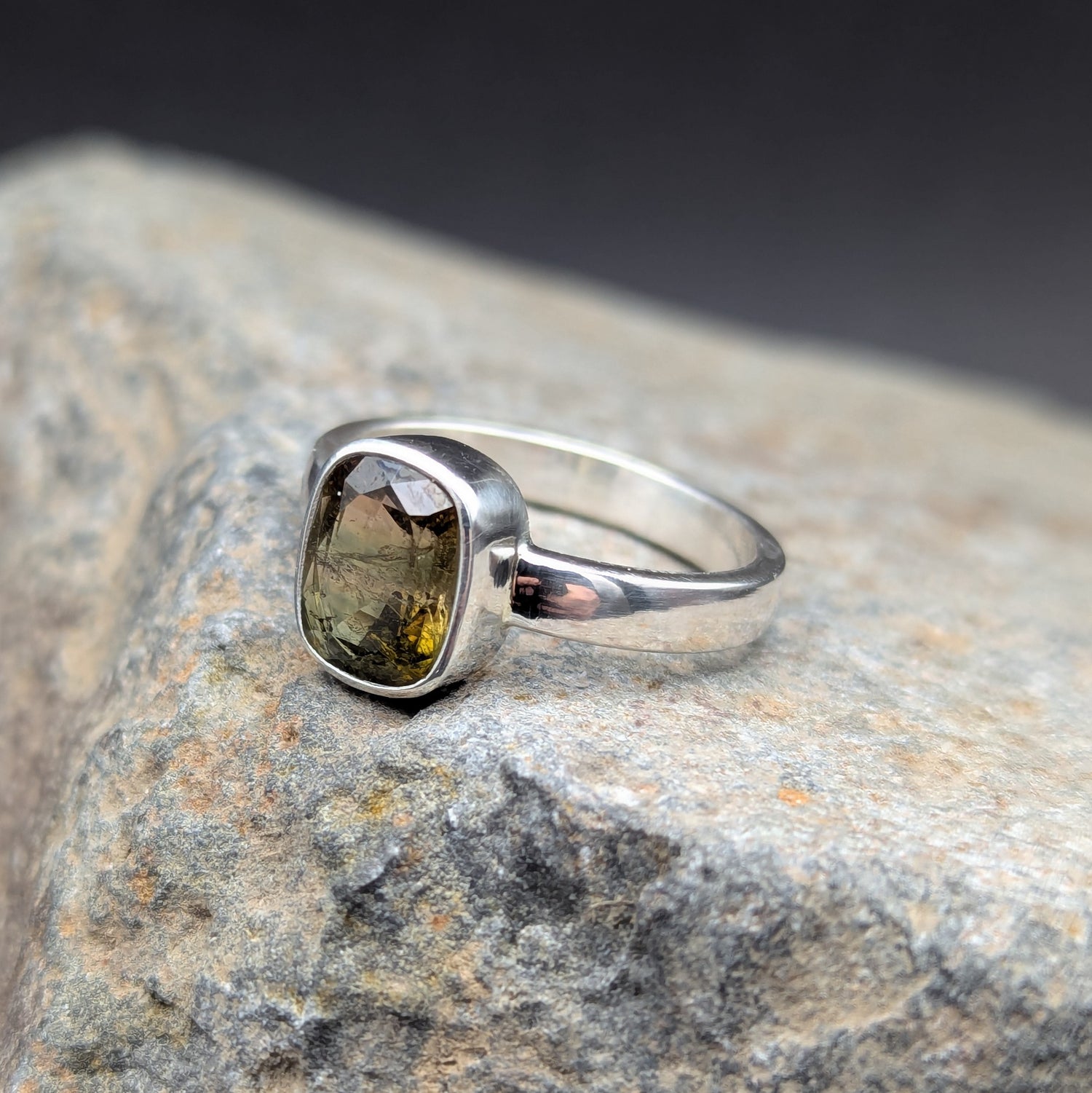 Rose Cut Labradorite and Red Tourmaline. Oxidized sterling silver.