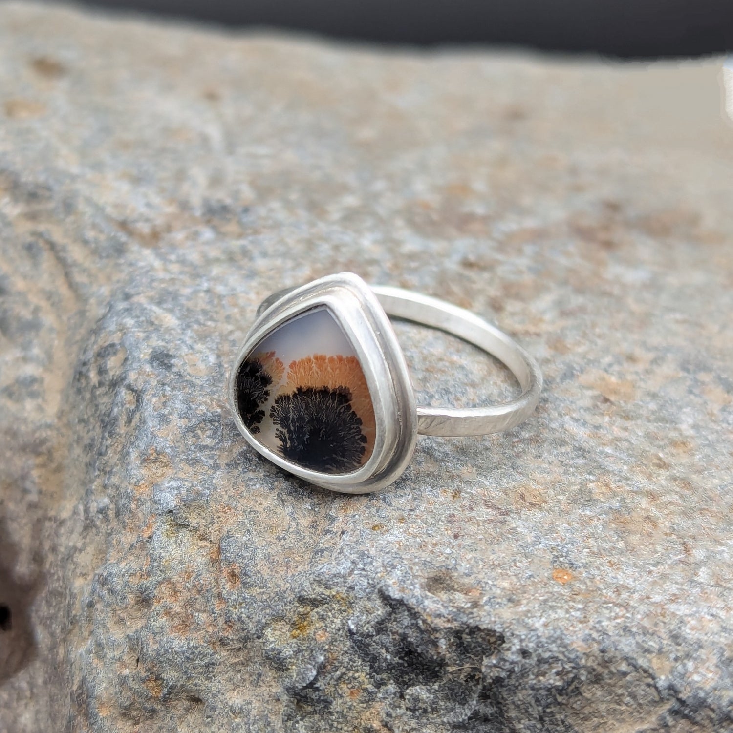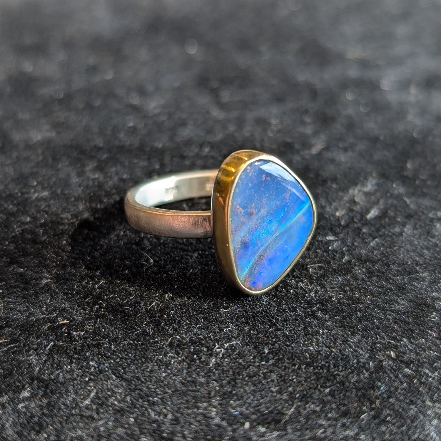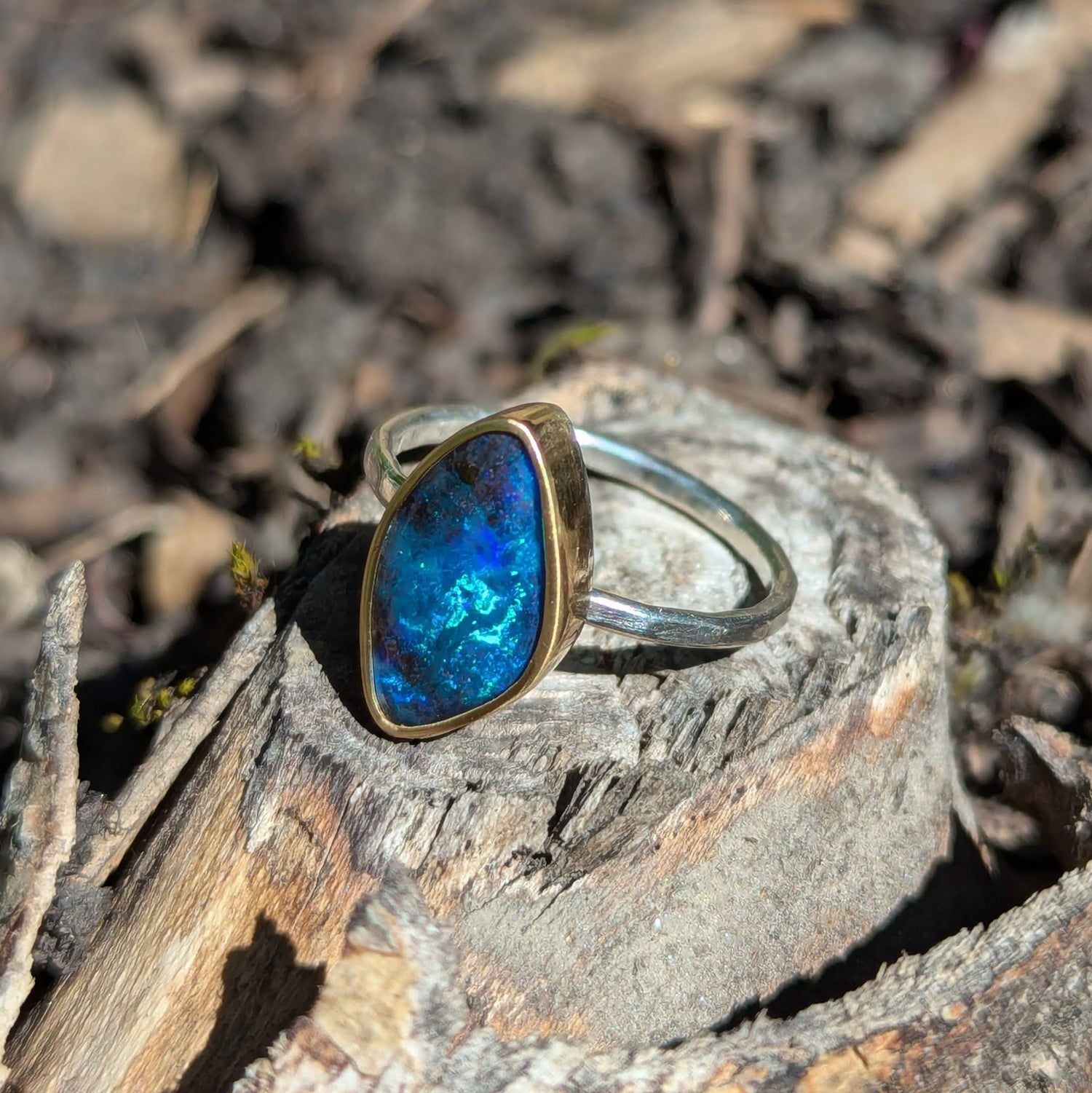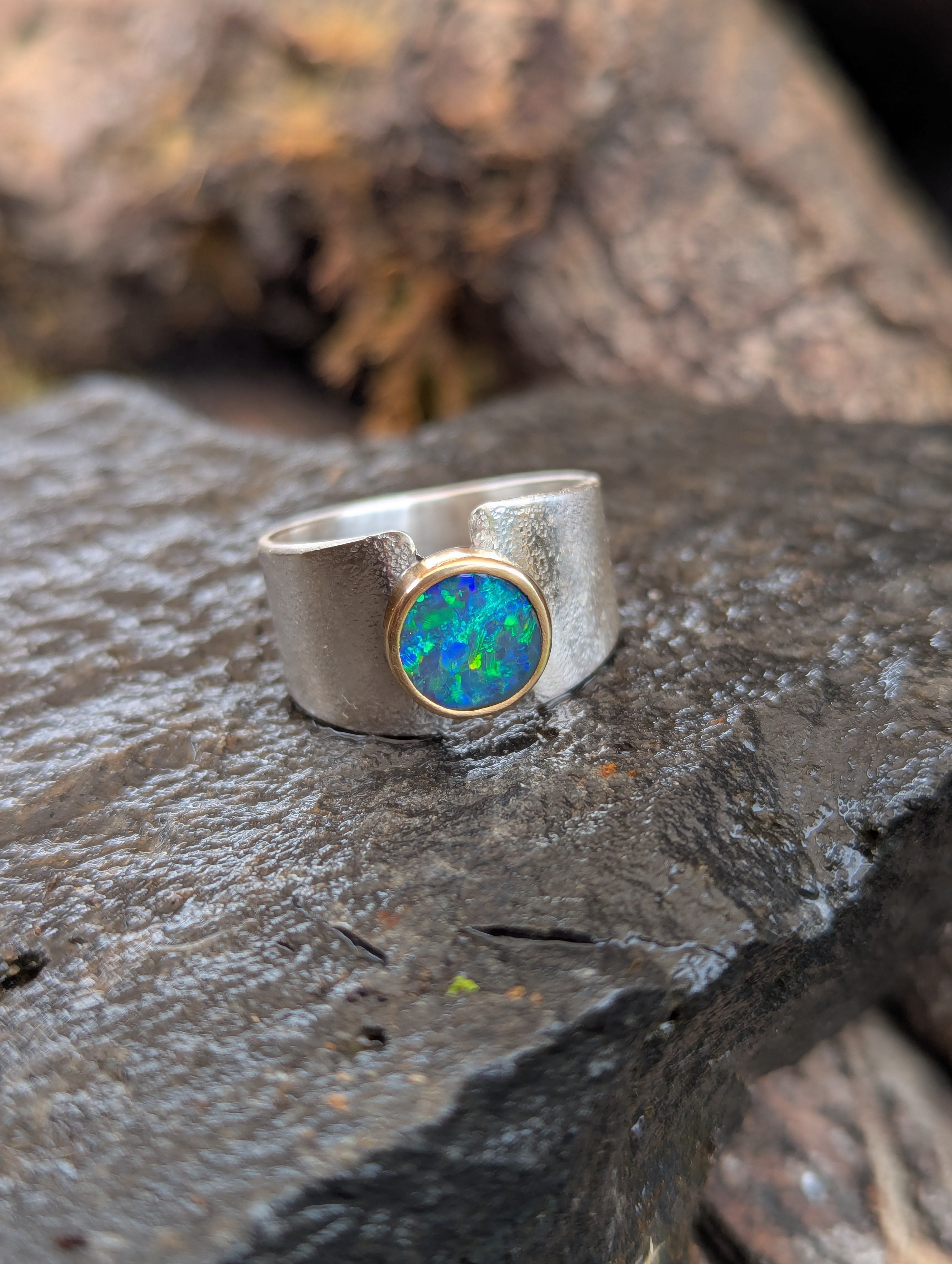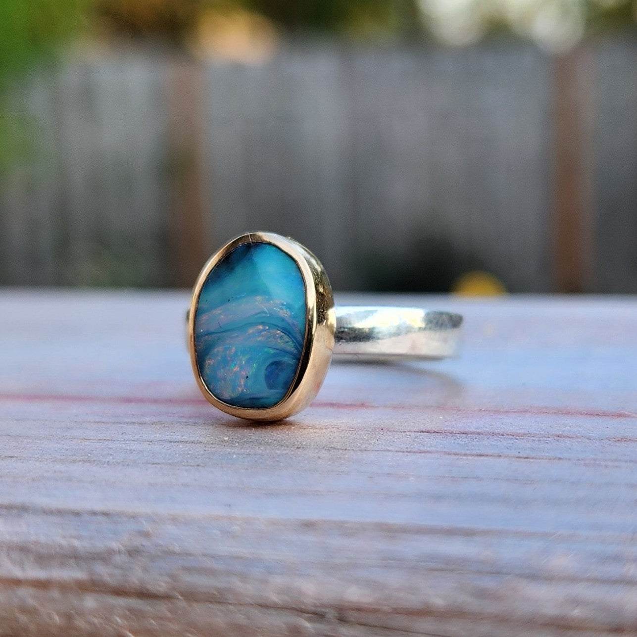 Rose Cut Labradorite and Red Tourmaline. Oxidized sterling silver.