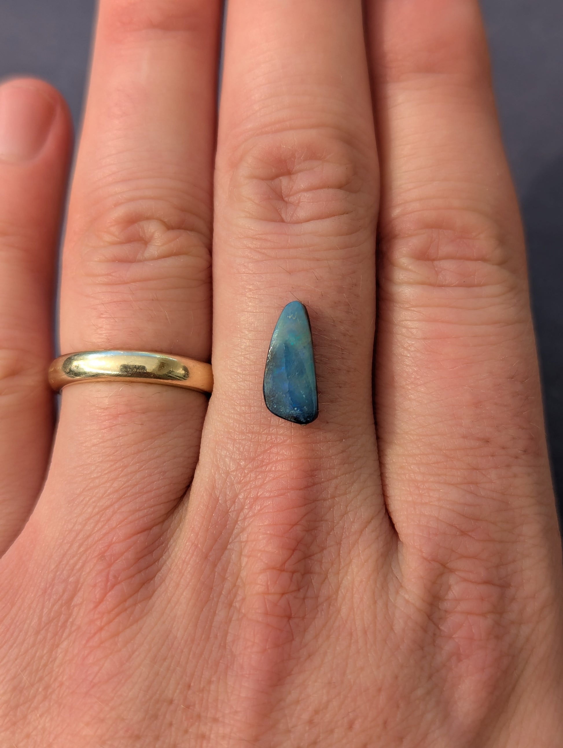 A stunning boulder opal cut and polished in the David Forshee Jewelry studio.