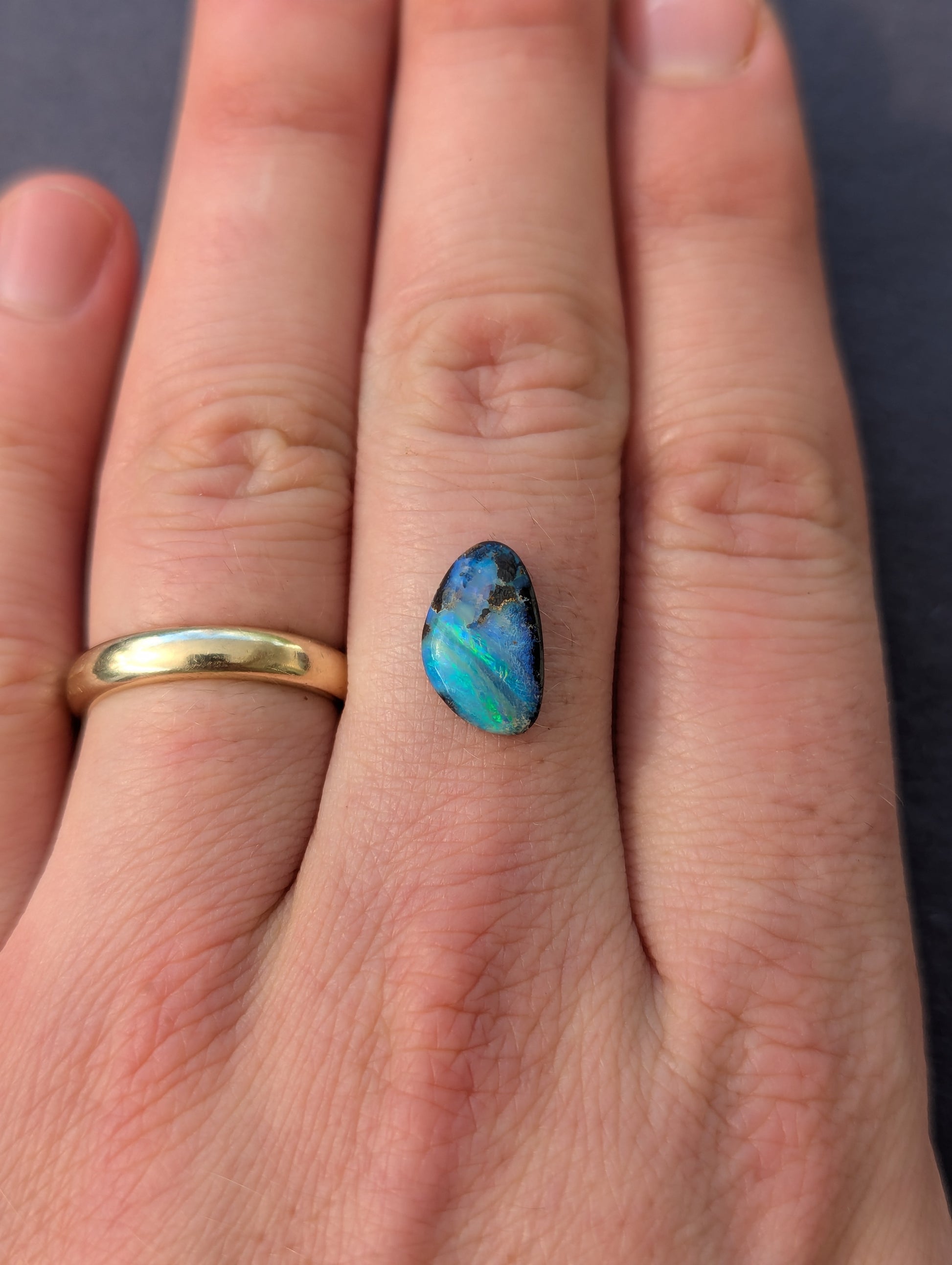 A stunning boulder opal cut and polished in the David Forshee Jewelry studio.