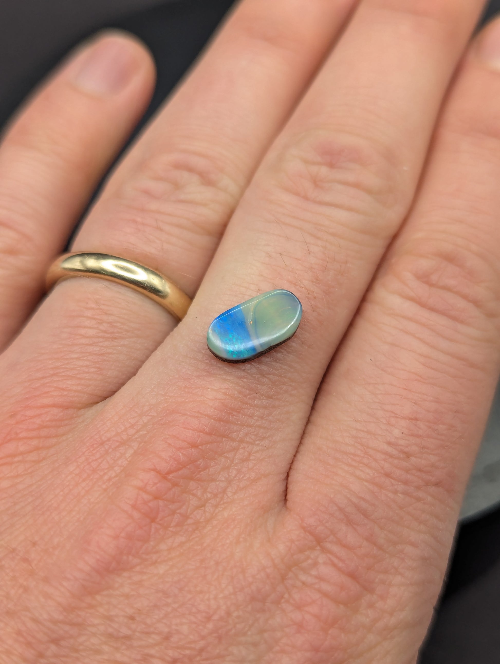 A stunning boulder opal cut and polished in the David Forshee Jewelry studio.