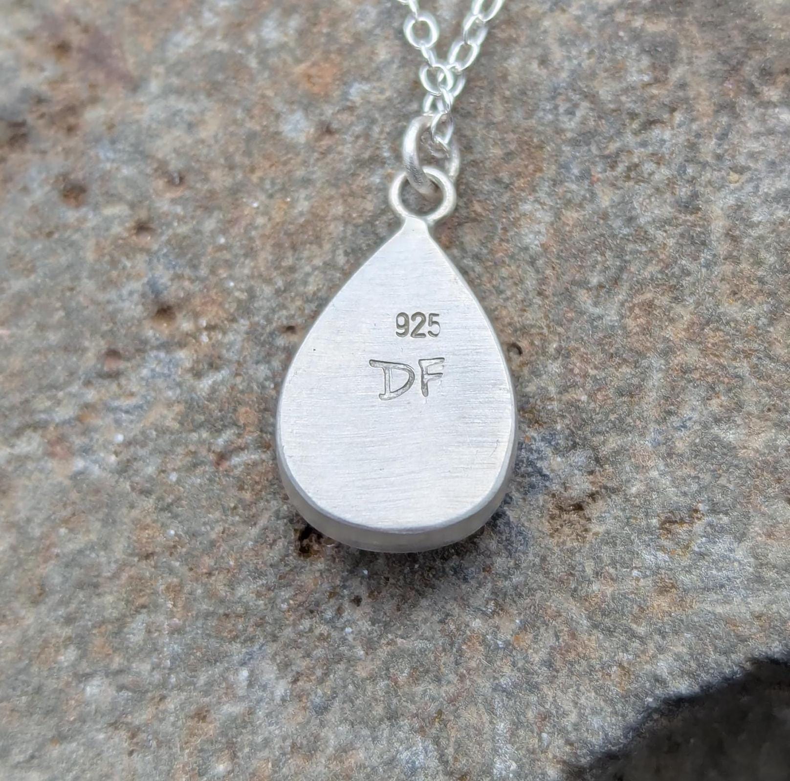 This lovely Moss Aquamarine is set in hand poured and formed sterling silver. This is a really beautiful stone with a soft blue color and mossy inclusions. It is set in a brushed silver setting with handmade jump rings. For this item, all components were hand made with the exception of the chain, which is premade.