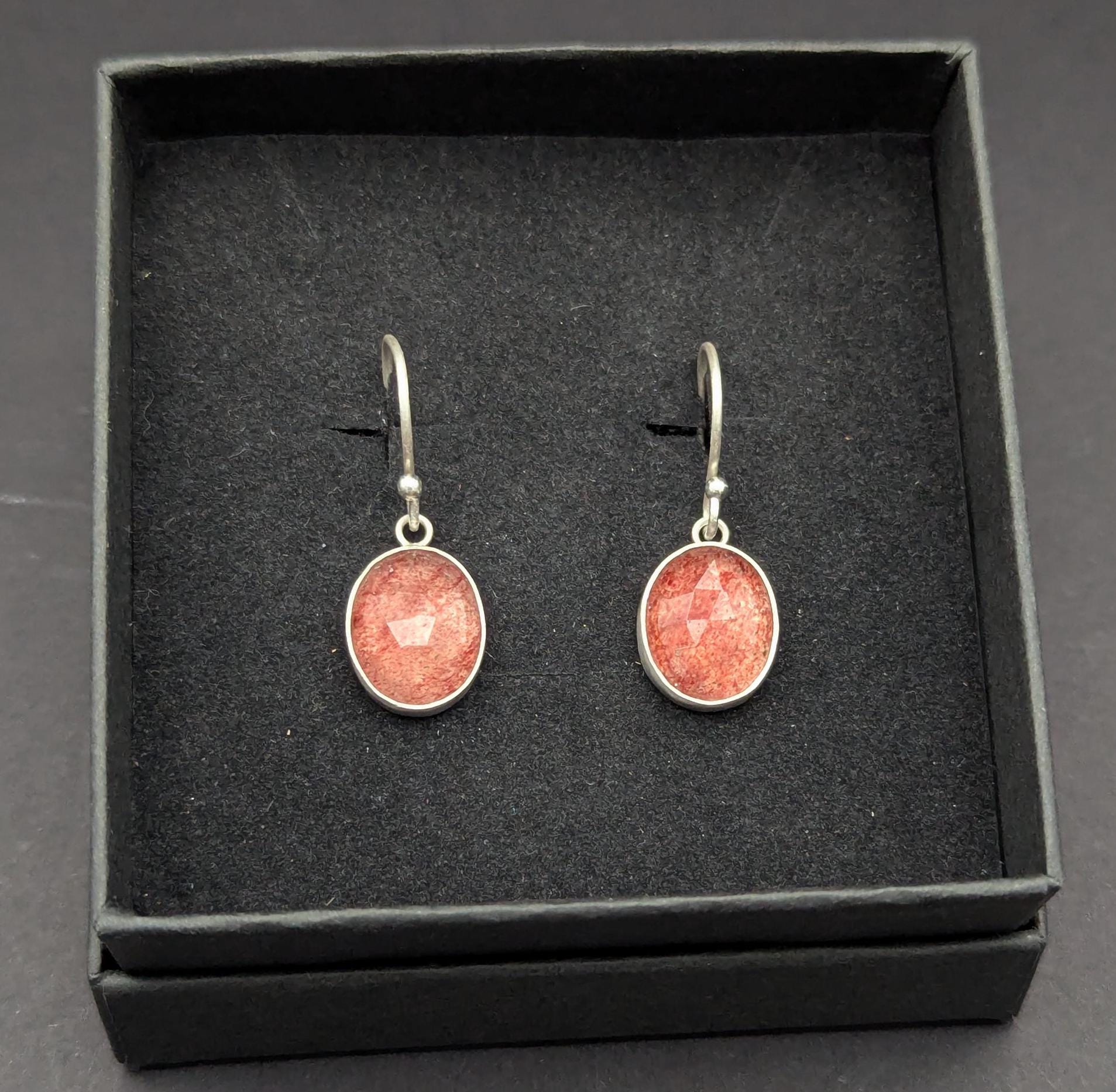 These rose cut Strawberry Quartz gemstones are set in sterling silver on handmade ear wire. Bezel set and brushed finish. For this item, all silver components are handmade including the bezels, ear wires, and jump rings.