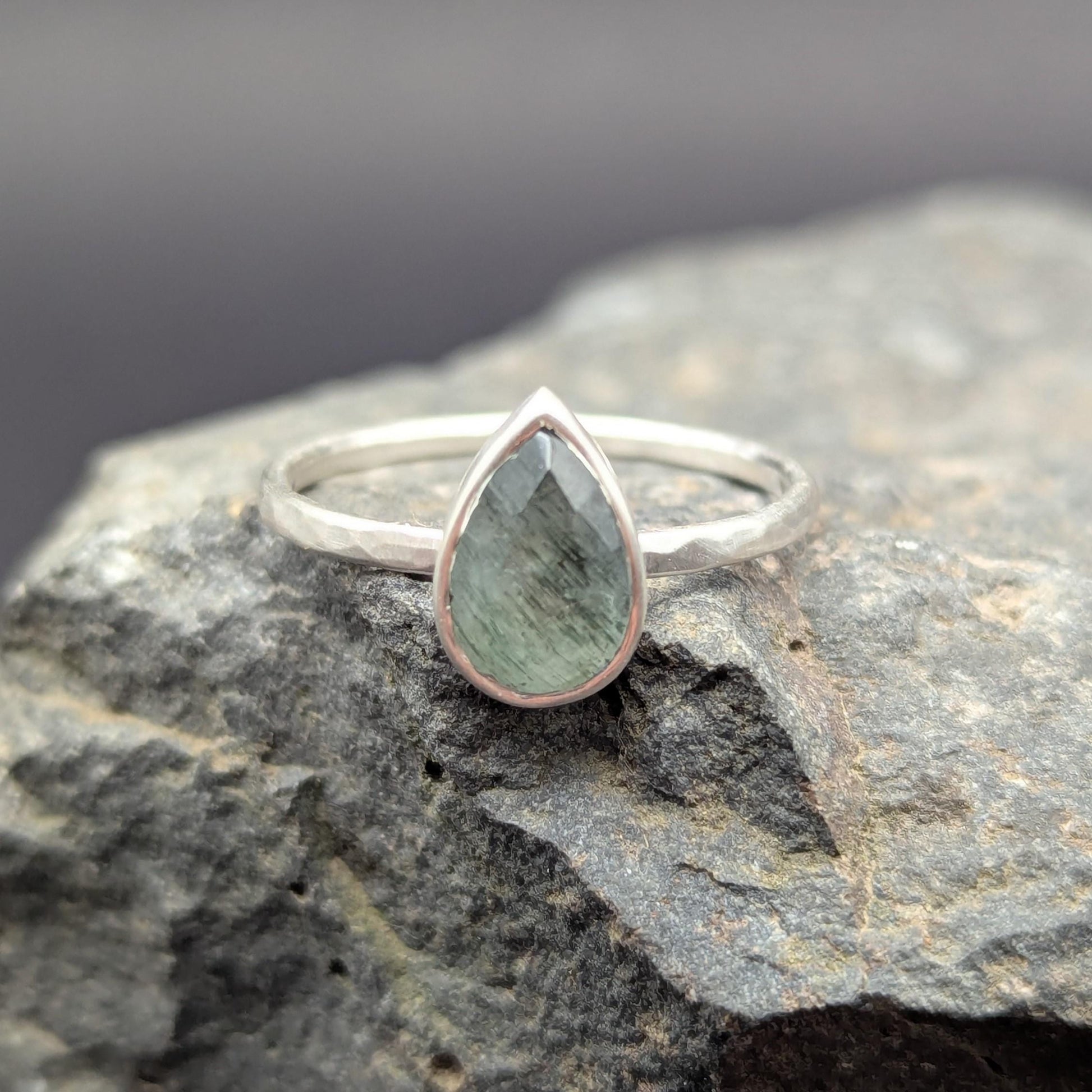 Moss Aquamarine Tear Drop Ring - Size 9.25
